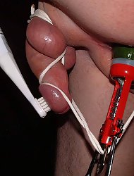 También es utilizado como forma de inmovilizar y aplastar los testículos para aumentar su sensibilidad, y se puede combinar con azotes o percusión.