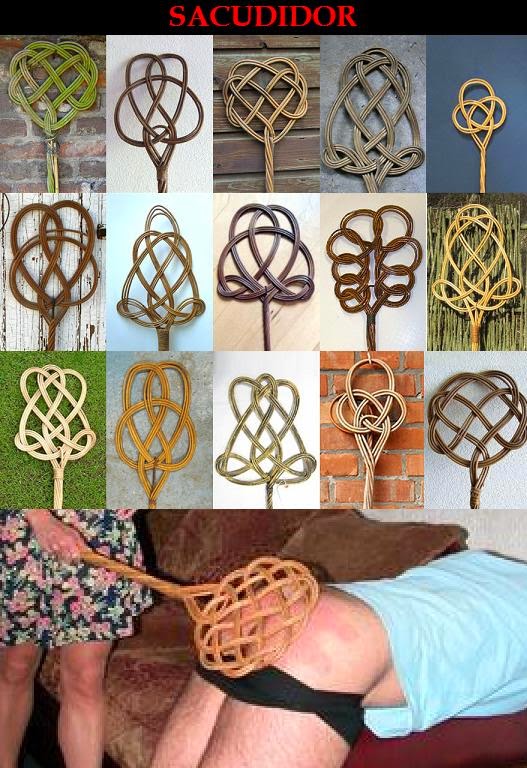 Un látigo es un instrumento consistente en una cuerda flexible con un mango fijo, comúnmente manufacturado de cuero trenzado o de otros materiales. En su punta, tiene una cuerda o cordel. El látigo es usado para el control o castigo. Tiene un fuerte sonido de azote, produce grandes marcas, y es doloroso al impactar con el cuerpo Existen muchos tipos de látigo, pero nos centraremos en dos. El látigo largo, y el látigo corto. - El látigo largo puede medir entre 1.80 metros, a 3.60 metros. - El látigo corto puede ir de 1 metro a 1.60 metros Los dos látigos pueden estar hechos de la misma manera, pero con medidas diferentes. Ni que decir tiene... que cuanto más largo, más complicado de manejar, y más doloroso Y como punto final a esta sección, pondré un par de fotitos con instrumentos caseros, pero bueno, realmente cualquier cosa que sirva para golpear, es válida. Instrumentos caseros, podemos encontrar en cualquier parte de nuestra casa, así que ya la gente que los use con cuidado, y experimente si quiere.
